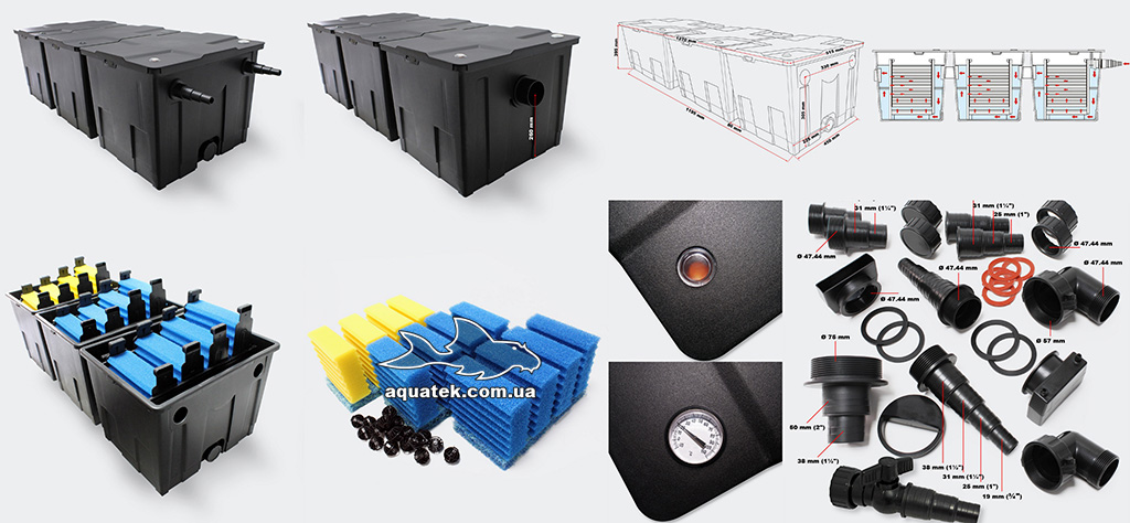 Фильтр SunSun CBF 350C предназначен для обслуживания прудов объемом от 40 000л до 90 000л (при наличии живых растений и без рыбы), обеспечивая надежную механическую, биологическую и химическую (при наличии соответствующих наполнителей) фильтрацию.
