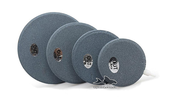Керамический распылитель в форме таблетки используется вместе с компрессором для насыщения воды кислородом. Благодаря своей пористой структуре и множеству мелких отверстий, распылитель создает облако пузырьков воздуха, которые прекрасно растворяются в воде практически бесшумно.
