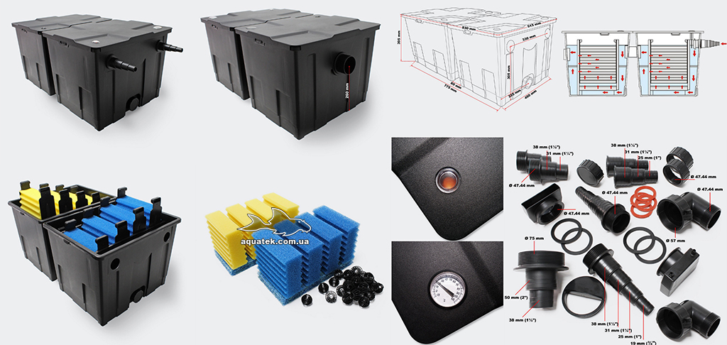 Фильтр SunSun CBF 350B предназначен для обслуживания прудов объемом от 30 000л до 60 000л (при наличии живых растений и без рыбы), обеспечивая надежную механическую, биологическую и химическую (при наличии соответствующих наполнителей) фильтрацию.
