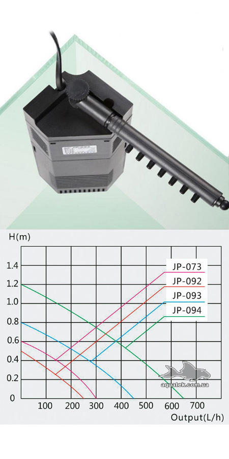 SUNSUN JP - 093 - это погружной угловой фильтр для аквариумов объемом до 100 литров. Производительность фильтра составляет 450 литров в час.