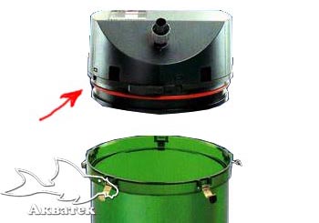 На фото показано как должны стыковаться голова и корпус внешнего фильтра - с равномерным зазором и без каких либо перекосов. |